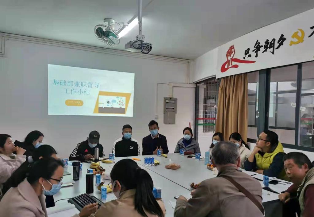 为了更好地促进学校教学工作高质量发展,进一步发挥教师团队“老带新”的精准帮扶效果,推动兼职督导队伍的良性发展,11月23日,基础部在教师会议室召开了基础部上半学期兼职督导工作总结会议。督导办公室主任王力、基础部全体专任教师和兼职督导陈建娣、谢希参加了本次会议。会议由兼职督导陈建娣老师主持。