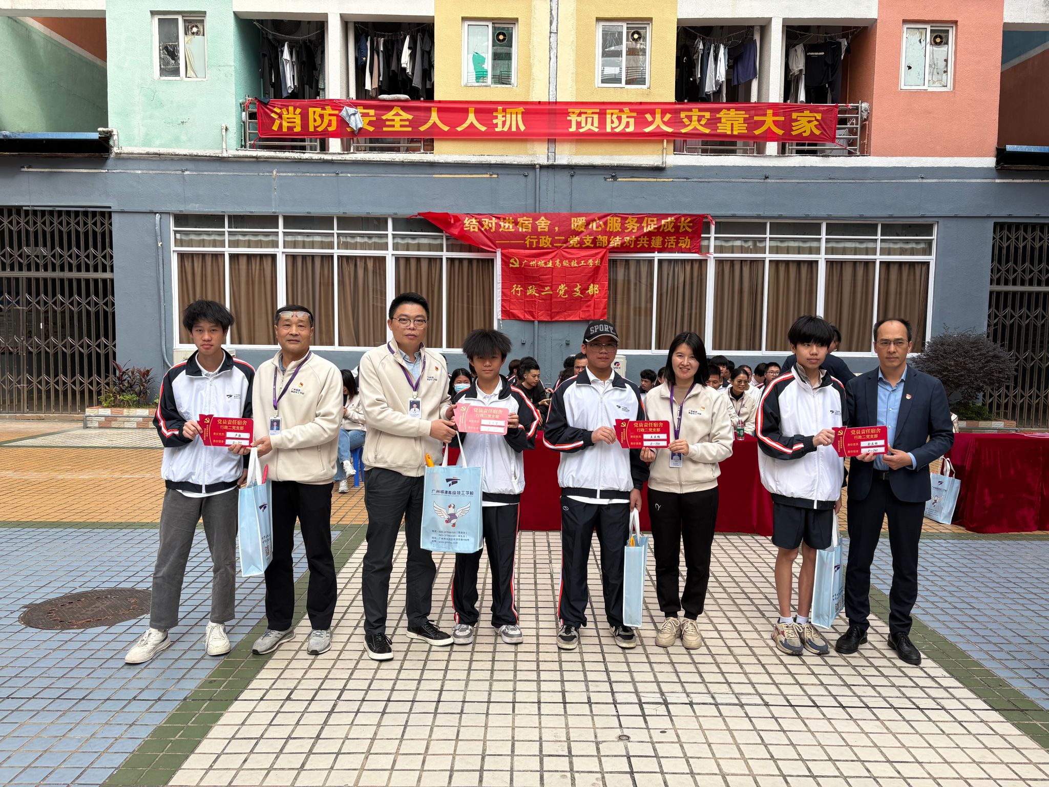 启动仪式结束后,与会领导、党员师生合影留念。各位结对党员随即前往对接学生宿舍开展了首次联系交流活动,进一步压实了党员责任,真正做到联系群众,服务群众,有效地履行了党员职责。
