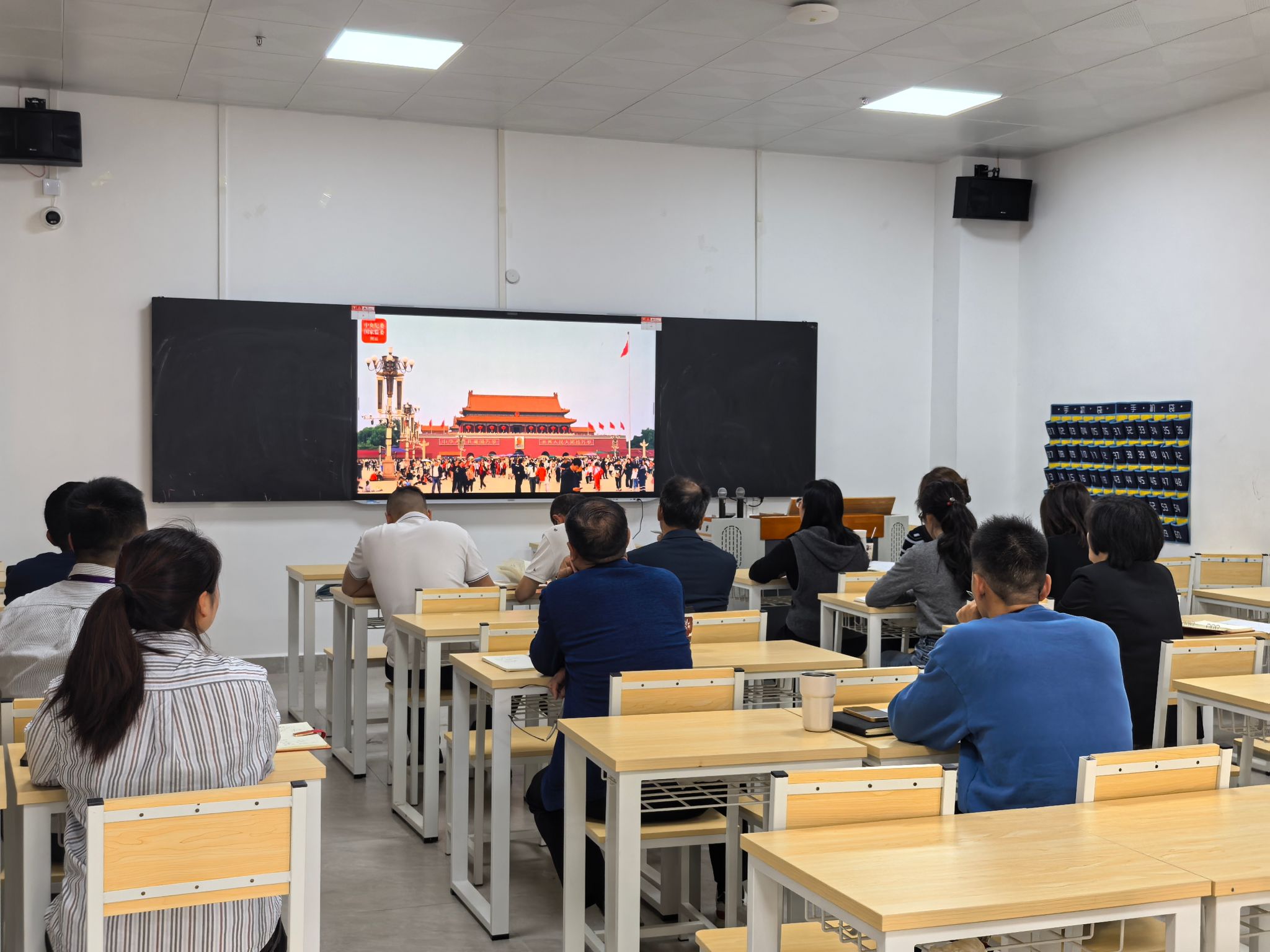 为持续深化理论学习,切实把思想和行动统一到党中央决策部署上来,2026年3月18日上午9时,行政二党支部在2栋106教室组织开展专题党课学习,本次党课以学习贯彻习近平新时代中国特色社会主义思想和党的二十届四中全会精神为主题,由党支部书记李炜英主持,支部15名党员全员参与学习。