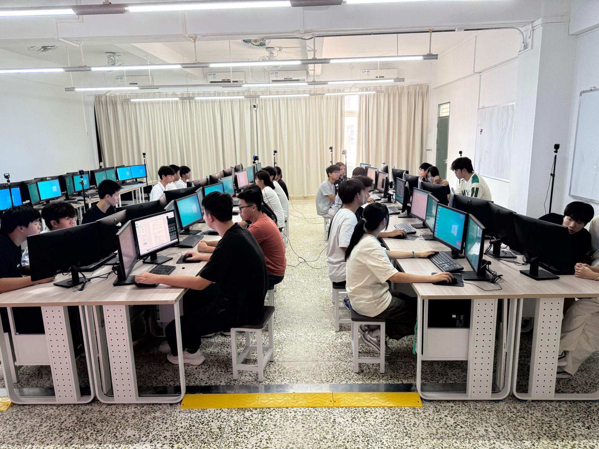 历经21天持续奋战,10月19日下午,全国选拔赛以线上形式举行。在先进制造系组织后勤团队的全力保障下,参赛选手于财经楼606、607教室投入190分钟的紧张比赛中。他们全神贯注、争分夺秒,坚持到最后一刻才提交作品,充分展现了拼搏到底的竞赛精神。