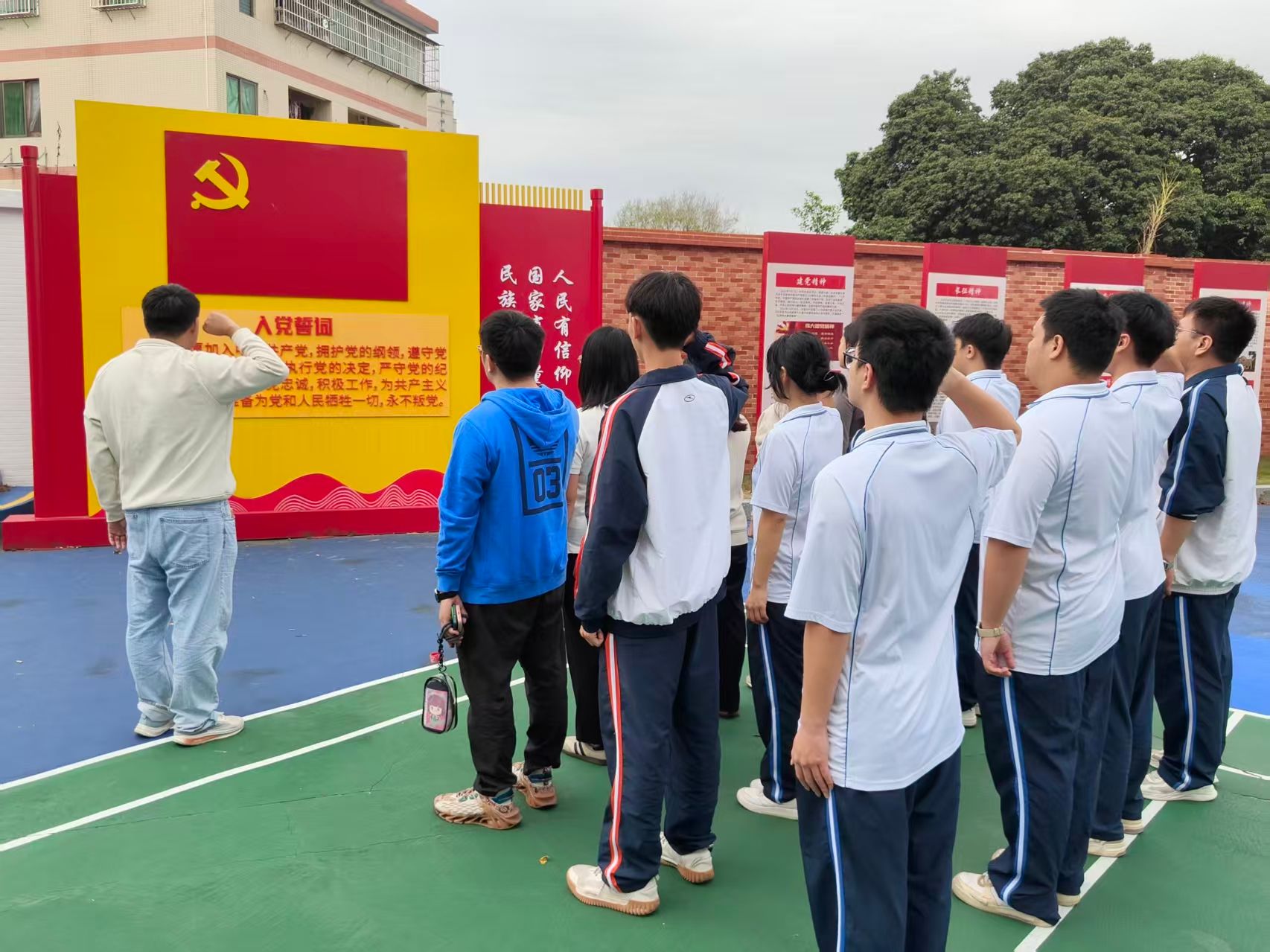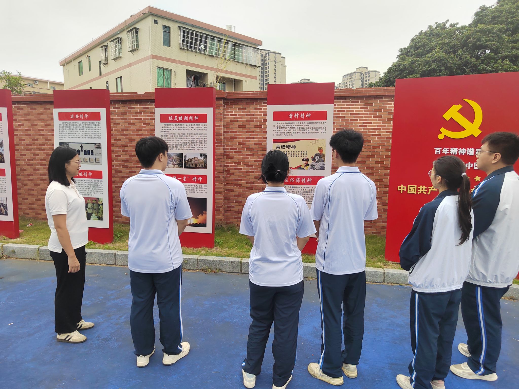 其次,由支部书记徐敏仪带领全体人员走进学校红色文化教育基地开展党史学习。在党史学习中,大家深入了解中国共产党人的精神族谱,聆听每一种精神背后的奋斗故事,精神受到了深刻洗礼。