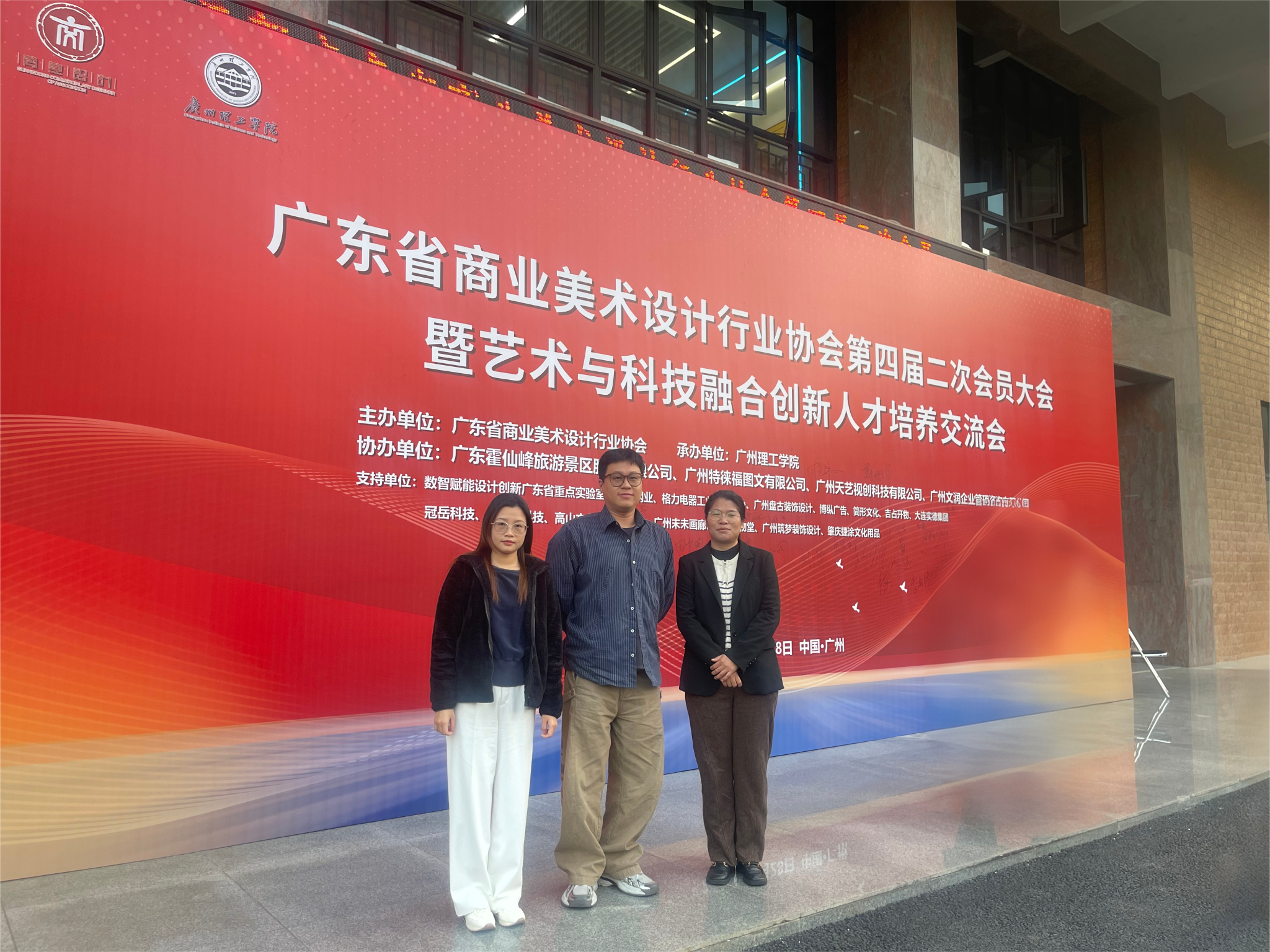2025年12月28日,由广东省商业美术设计行业协会主办、广州理工学院承办的“第四届二次会员大会暨艺术与科技融合创新人才培养交流会”在广州理工学院顺利召开。数字技术系室内设计专业骨干教师黄金宝、梁文慧、李鹏志应邀参会,与来自全省高校、企业及行业机构的专家代表齐聚一堂,共同探讨艺术与科技深度融合背景下设计类人才培养的创新模式与实践路径。