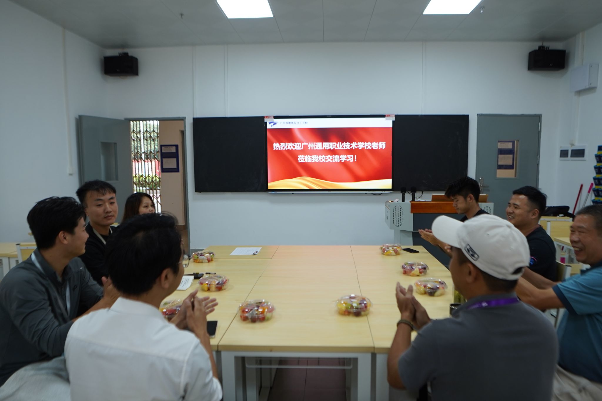 为深化校际体育教学经验共享,提升体育运动队建设与校内体育活动开展水平,2025年10月31日,广州通用职业技术学校一行17人到访我校,进行体育运动队建设与校内体育活动交流。我校团委书记李志青、体育教研组组长余健等5位老师参与交流。会上围绕“运动队建设、校内体育活动及男子篮球赛等相关内容”开展专题交流研讨。