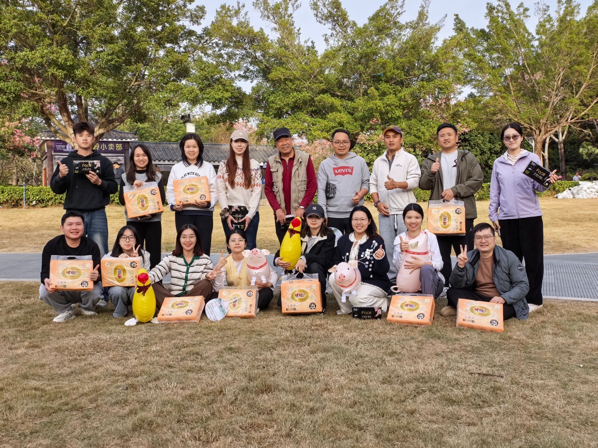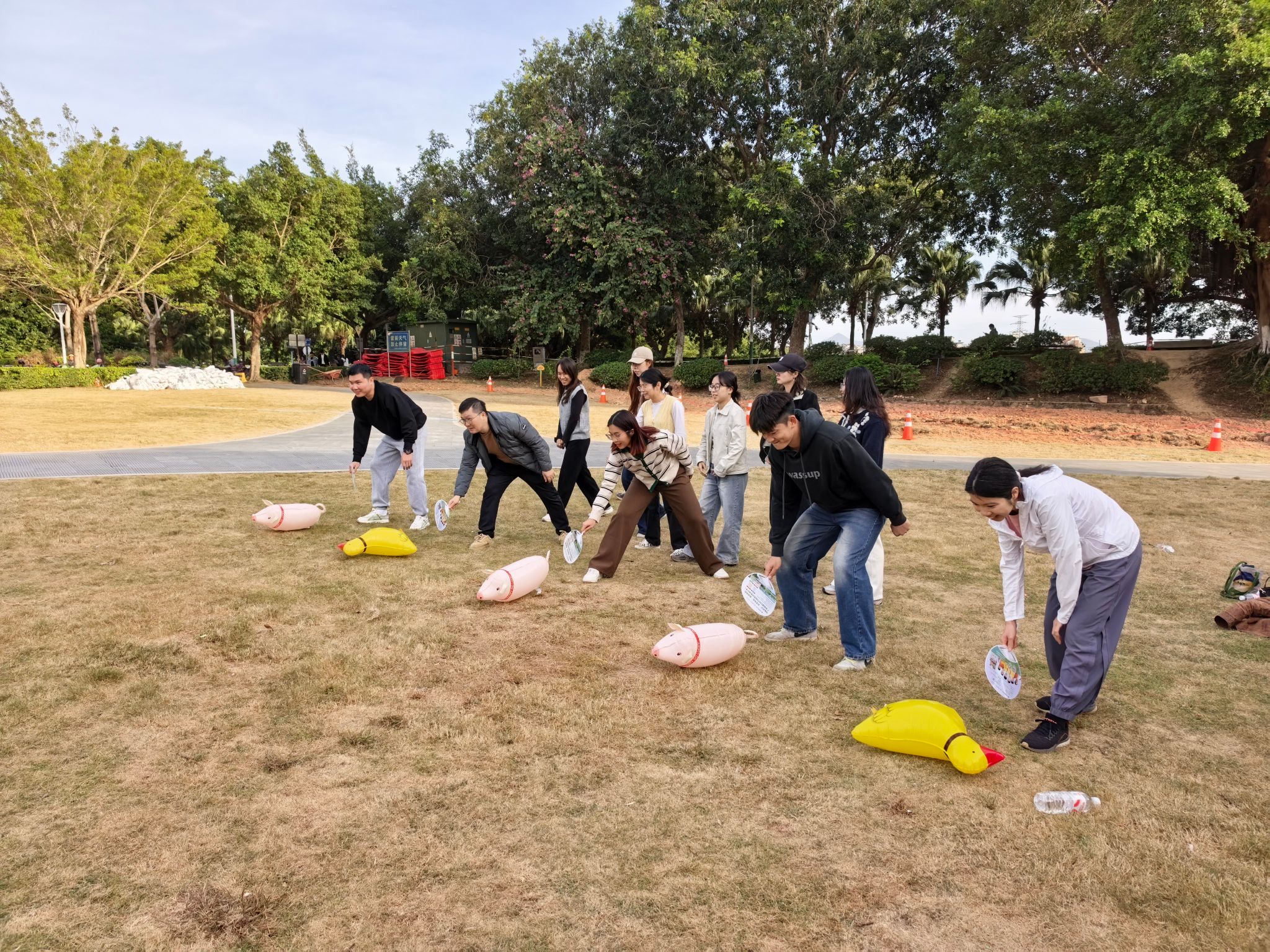 与此同时,另一支队伍赴从化艾米稻香小镇开展“期末减压趣团建・艾米同心聚力量”活动。户外草地上,“小猪快跑”等趣味游戏轮番上演,各小组分工协作、奋勇争先,欢声笑语不断。