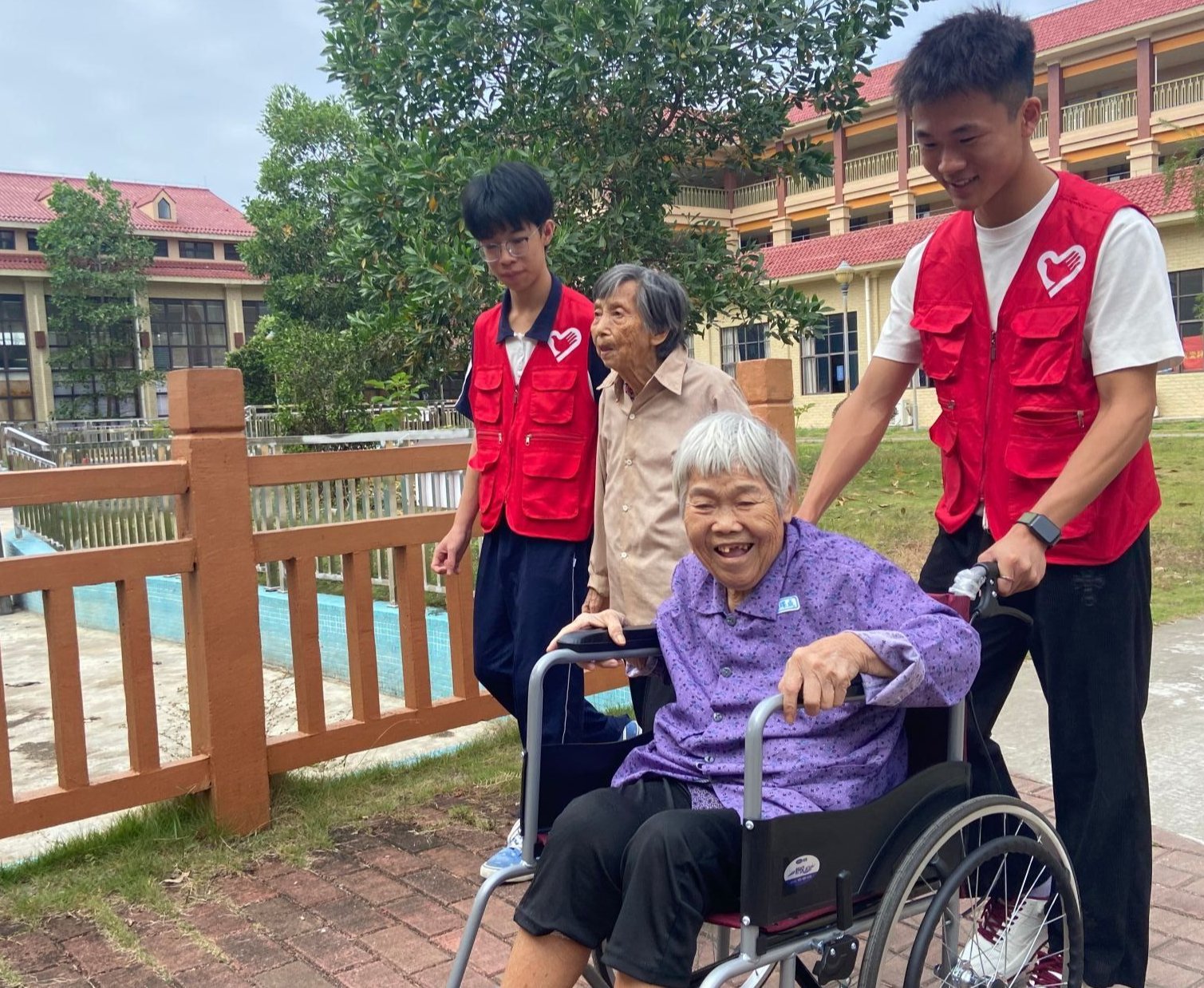 志愿者与老人亲切互动